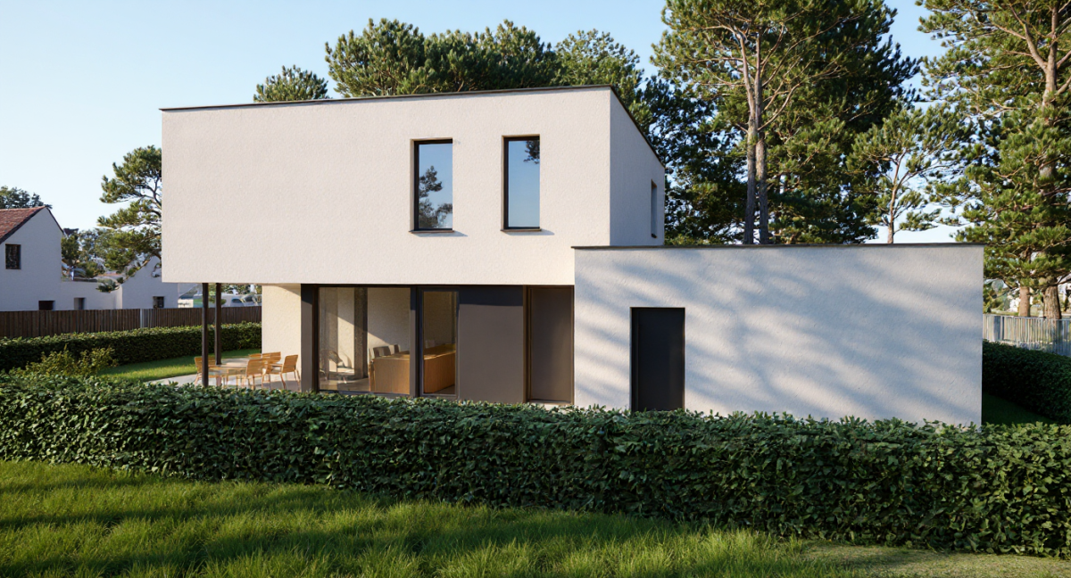 Maison contemporaine à toit plat – compacte, lumineuse et éco-performante